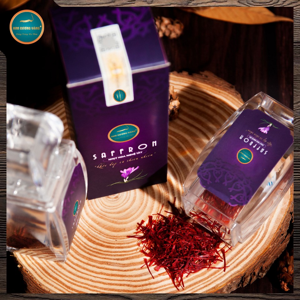 Saffron Kim Cương Vàng là sản phẩm tinh khiết không lẫn tạp chất, chỉ được thu hoạch từ những cây hoa nghệ tây 5 năm tuổi để cho ra những sợi nhụy chất lượng nhất có hàm lượng dưỡng chất cao nhất chứa hàm lượng Cr0cin (>270) cao gấp đôi saffron bình thường.