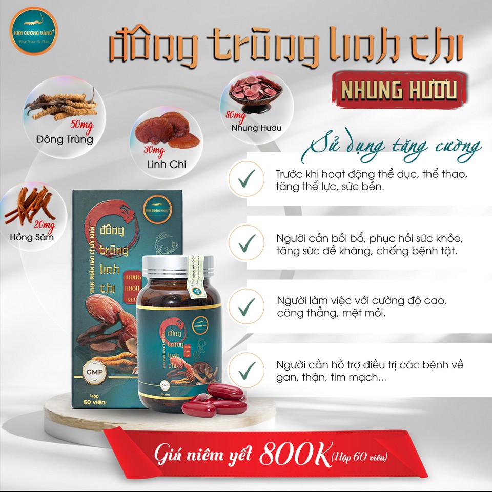 Viên uống Đông Trùng Linh Chi Kim Cương Vàng: